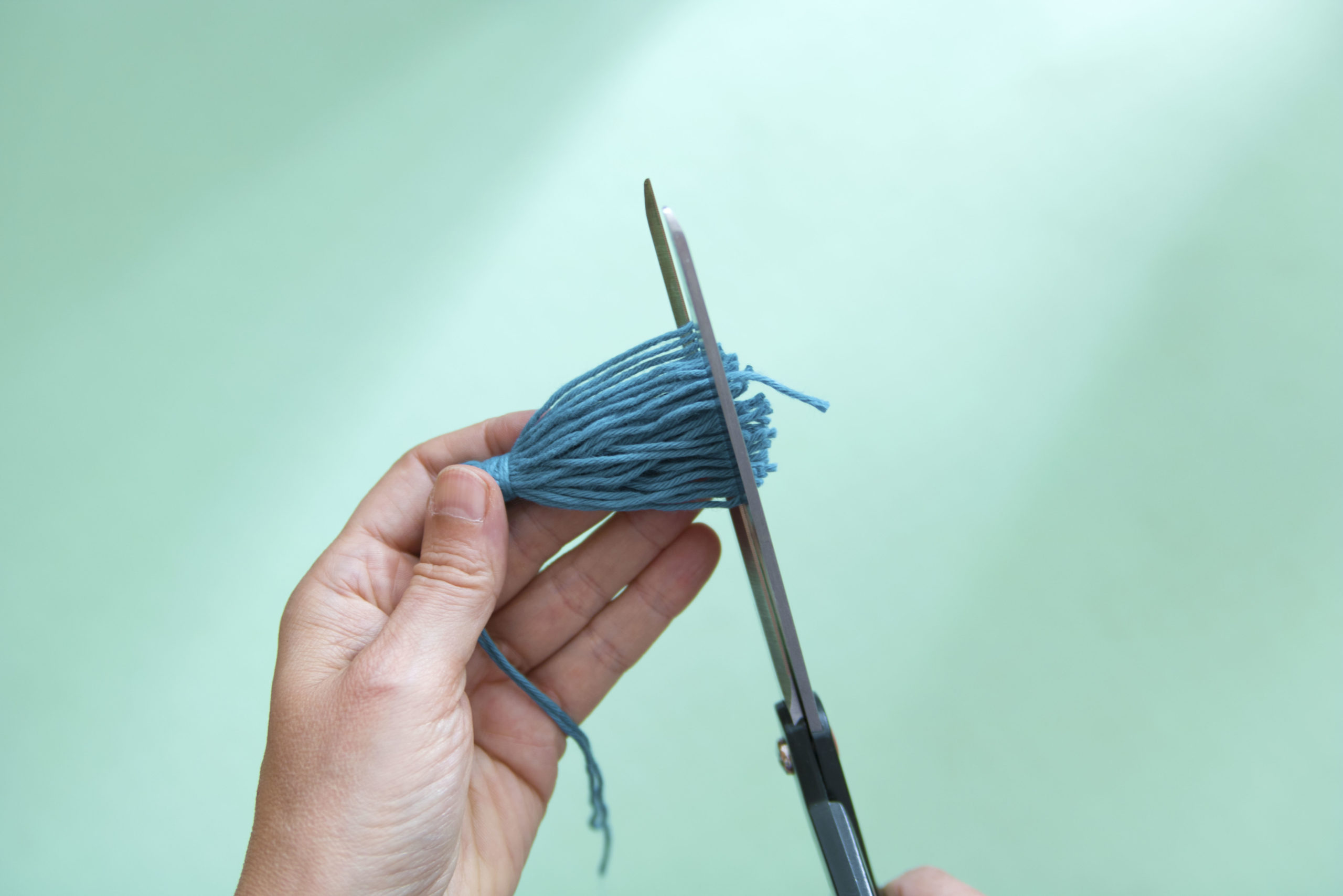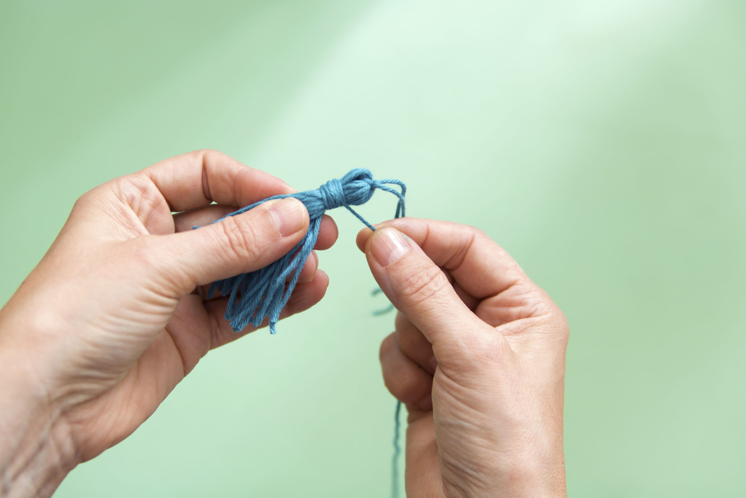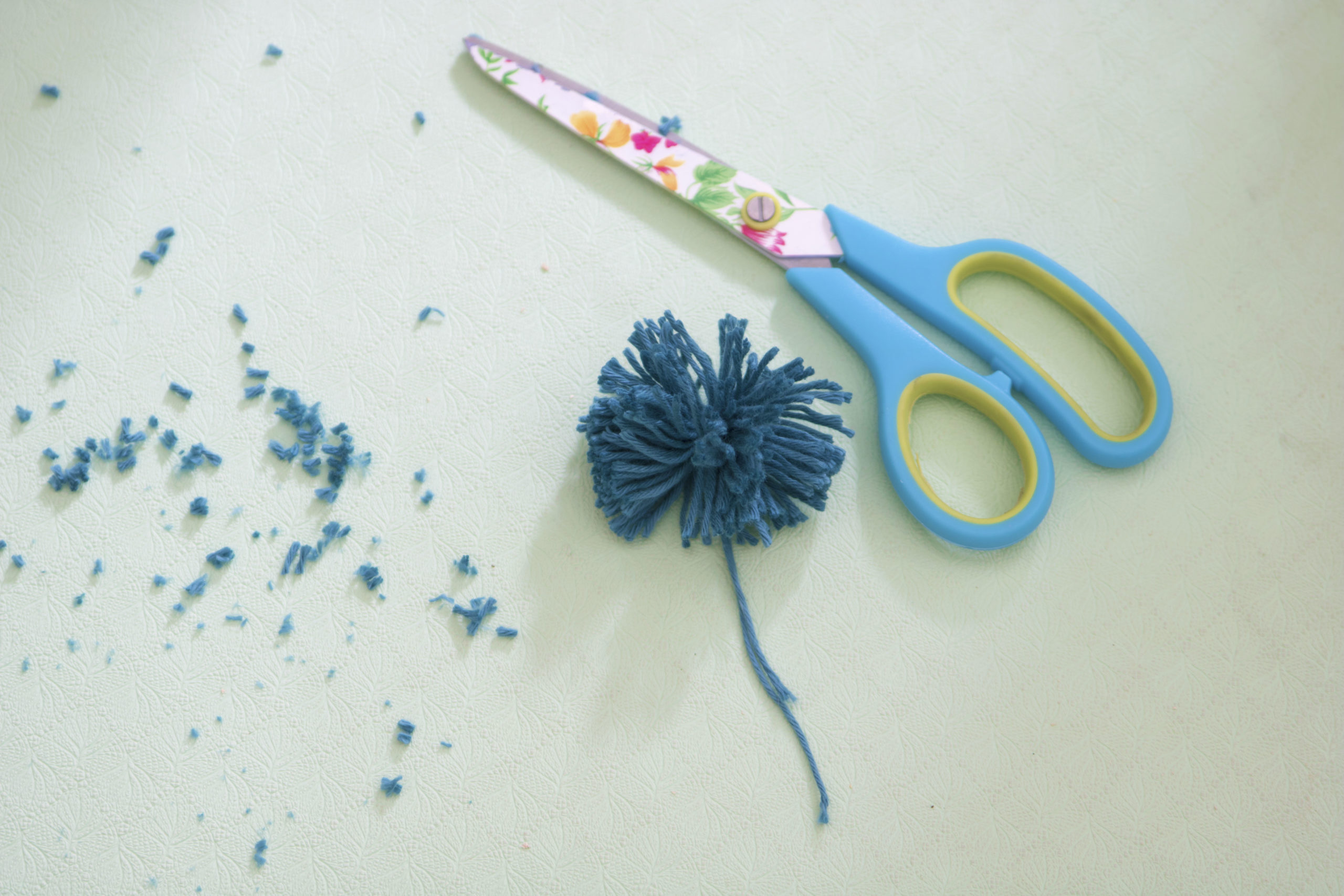 • Dicke Nadel (z.B. Sticknadel) zum Befestigen der Pompoms/Quasten