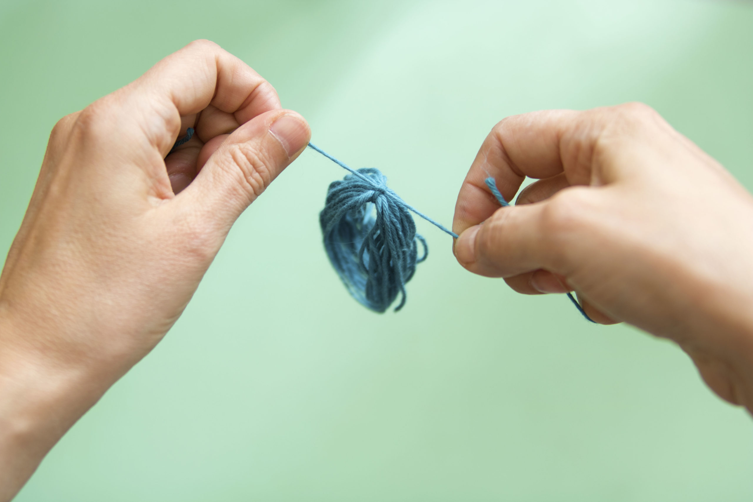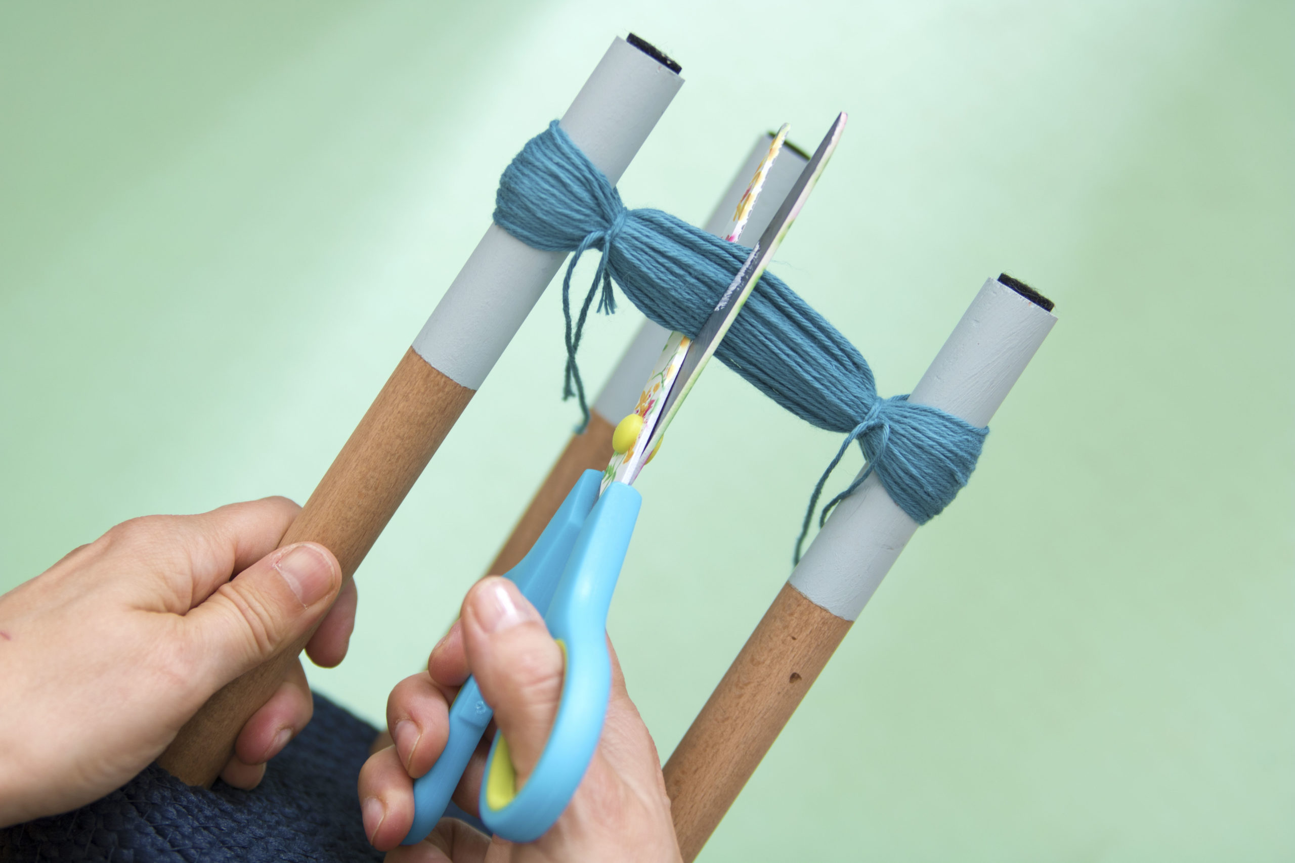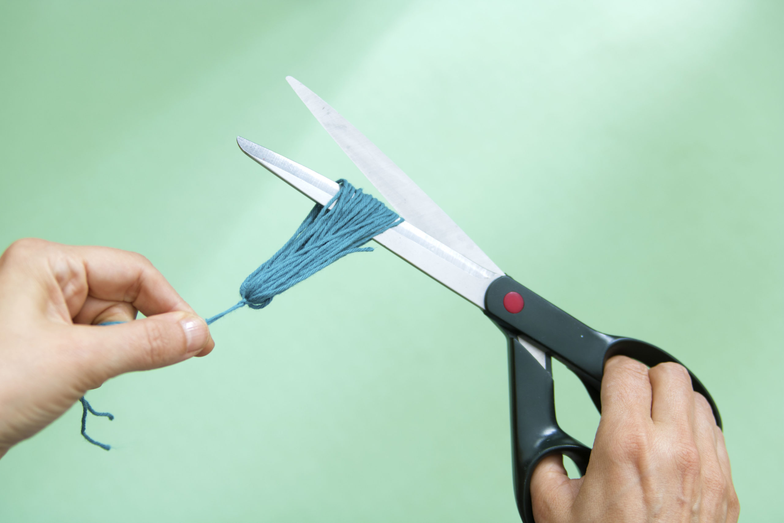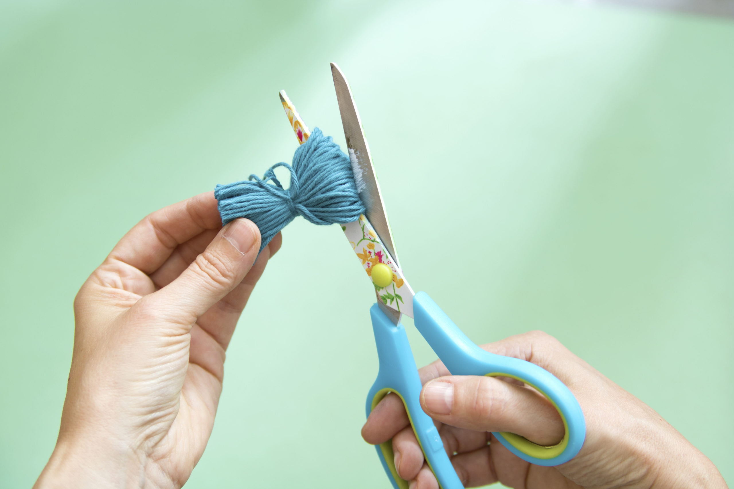 • Dicke Nadel (z.B. Sticknadel) zum Befestigen der Pompoms/Quasten