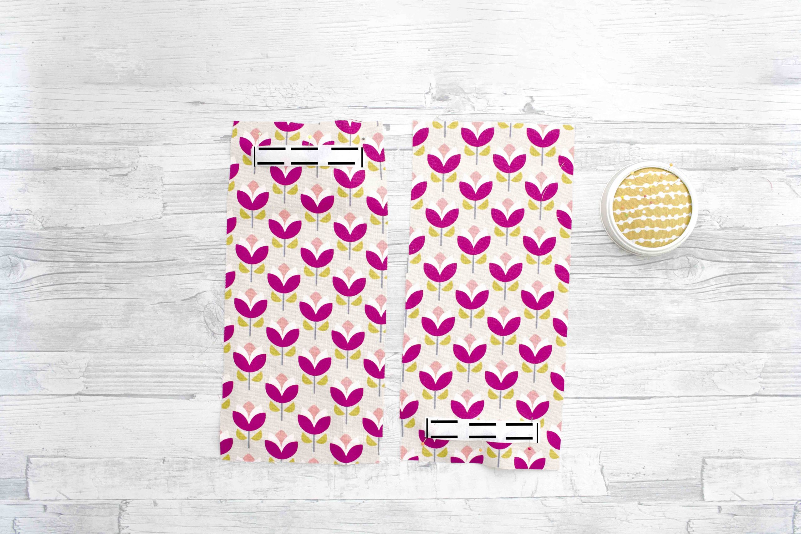 - Baumwollstoff für Henkel: 2 x je 10 x 33 cm