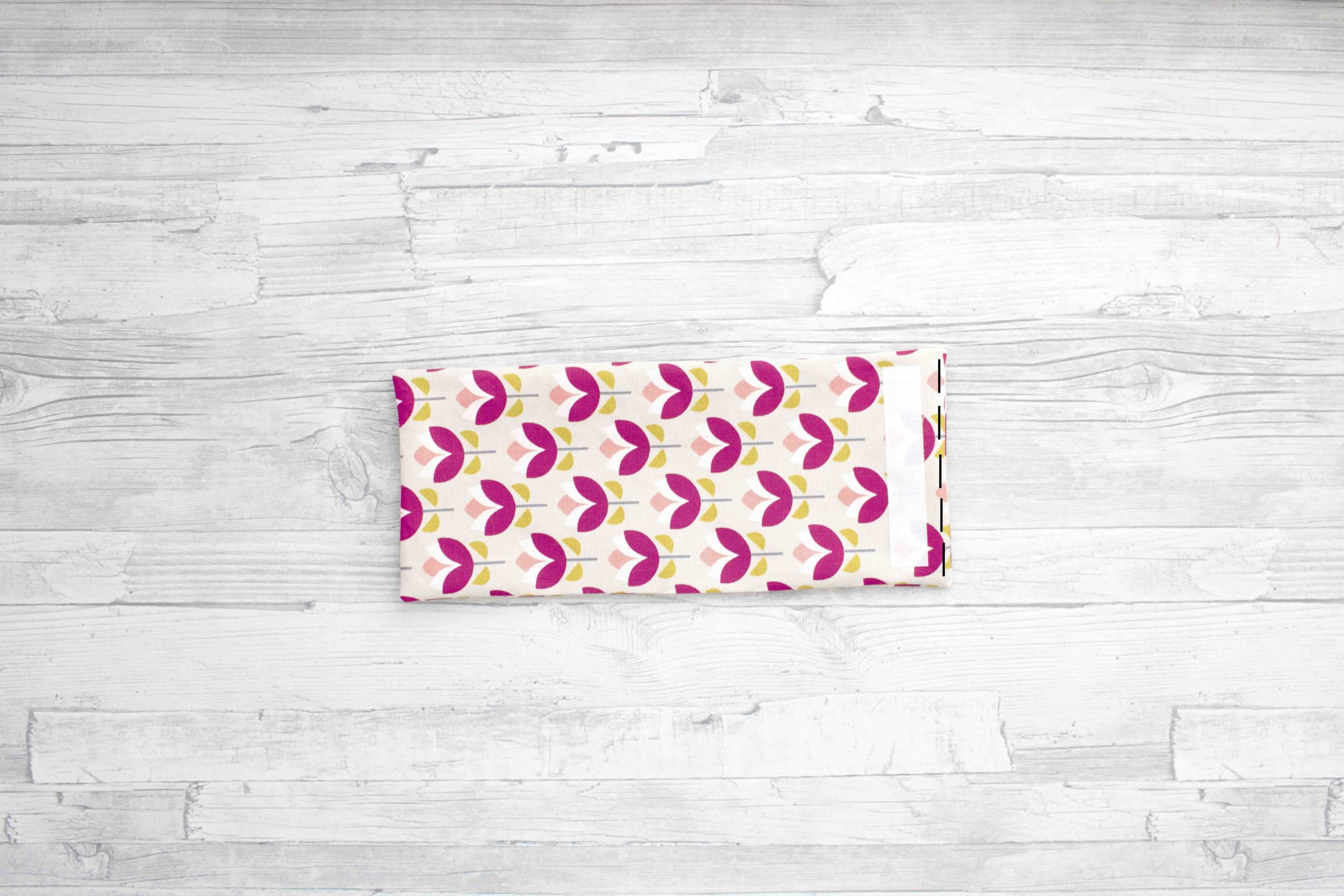 Den genähten Part haben wir nun abgeschlossen. Jetzt müssen wir die hübsche Tasche nur noch in die richtige Größe falten und dann passt sie perfekt in jede Handtasche.